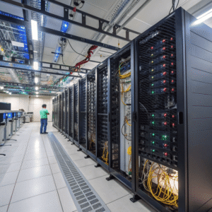 , storage devices, networking hardware, power and cooling systems, and robust security tools to keep all data operations smooth and safe.