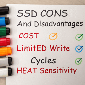 SSDs excel at speed, durability, and low noise. Downsides include higher prices, possible sudden failures, and lower write endurance for some models. Smart use and regular backups avoid trouble.